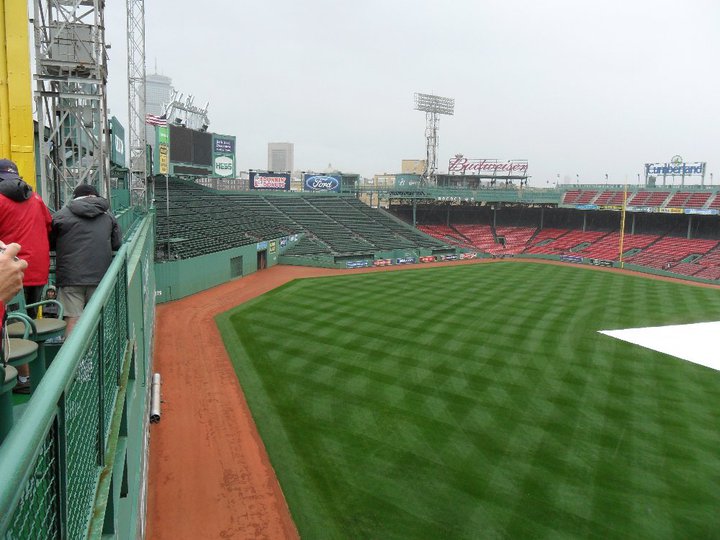 It was back to Fenway on Friday evening for what we hoped would be a game, but rain showers made that unlikely. After waiting out a 3 ½ hour rain delay, the game was finally postponed. Ironically, the kids actually enjoyed this more than the real game because they got to dance in the aisles to the music (we were actually shown on the large screen TV in center field) and watch the grounds crew work feverishly to keep the rain off the field. Luckily for us, our seats were under cover which made the long wait tolerable. We also used this opportunity to walk around the stadium and take in a lot of the surroundings that we would normally not have been able to do.