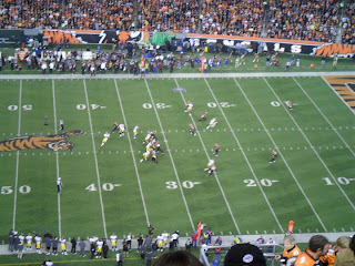 In my three games at Paul Brown Stadium, I have yet to find a bad seat in the house. This year, we were located in the upper deck, but right at mid-field. You can really get a sense for how plays develop when sitting this high up, but at times your depth perception is off a bit…or maybe my eyes are just getting old. Another aspect of the game I felt was tough to measure was field goals. The only way to know if the kicker missed was to watch the crowd behind the goal posts for their reaction.